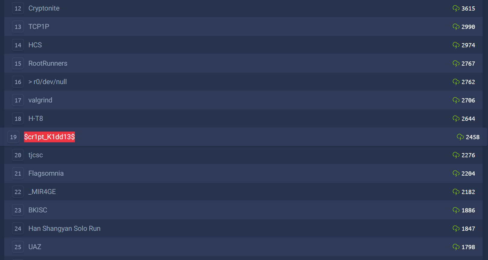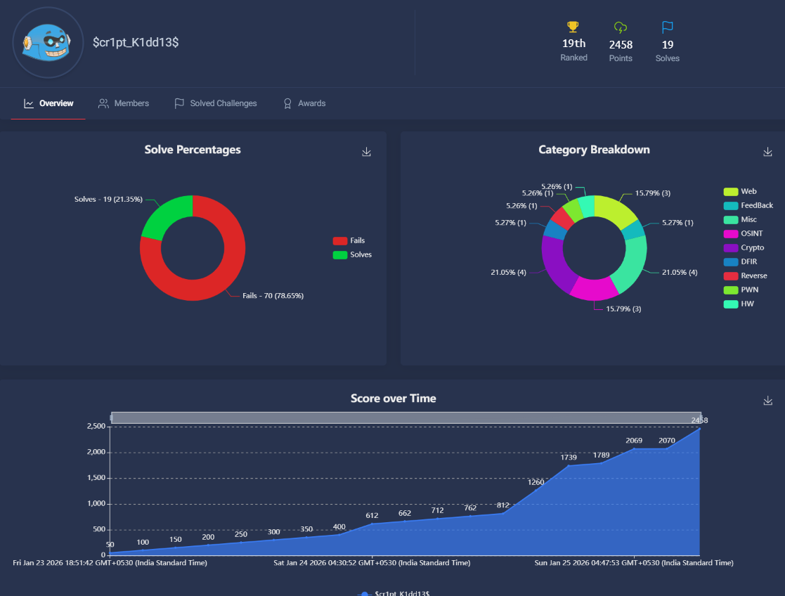 I participated during the weekend of 23 January 2025 with my teammates from $cr1pt_K1dd13$. Our team placed 19th out of 1732 teams.