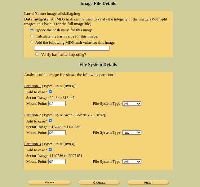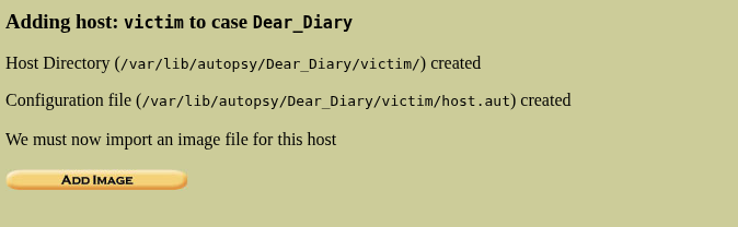 This will successfully add a host to the case, now using the host we will be analyzing the partitions. So after creating a host a new page will appear asking to “Add Image”, so we will be giving it the disk.flag.img file.