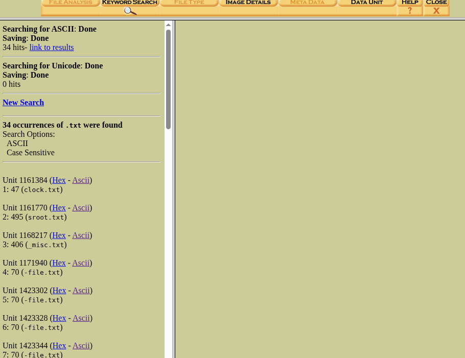 We can find few files named — clock.txt, sroot.txt etc., after clicking on Ascii and checking the contents, we can file useful info in the content of file.txt.