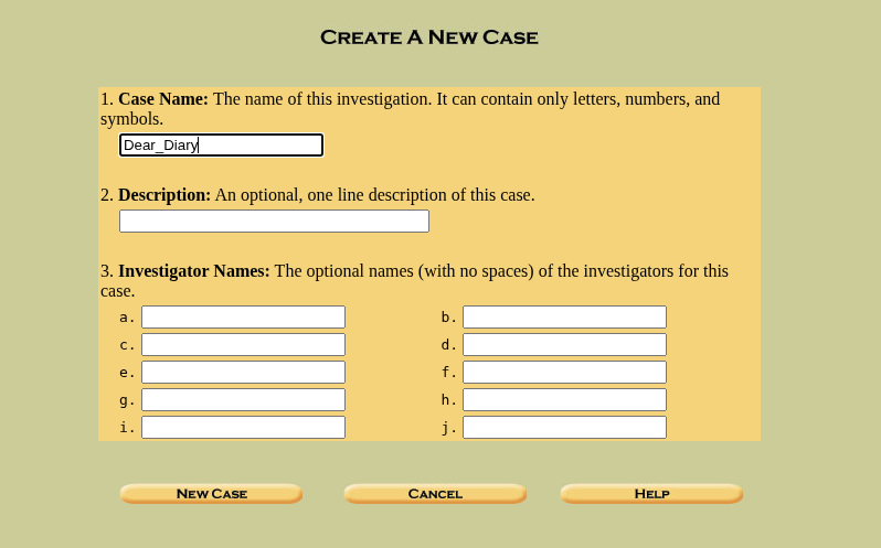 As we are dealing with a brand new disk image, we will be creating a “New Case”. After clicking on “New Case” this will be shown: